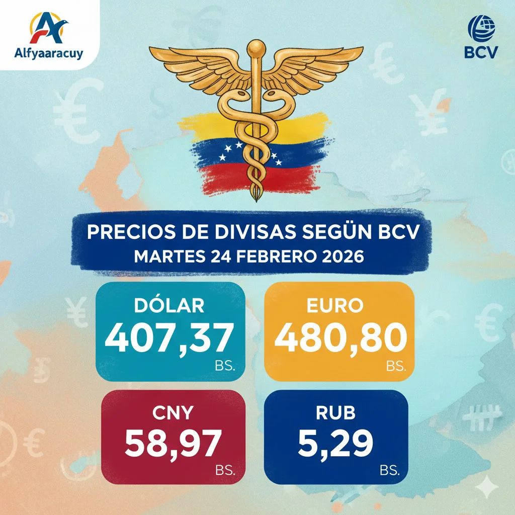Valor de las divisas según BCV para este martes 24 febrero: Dólar 407,37 – Euro 480,80 – Salario: 0,31 $